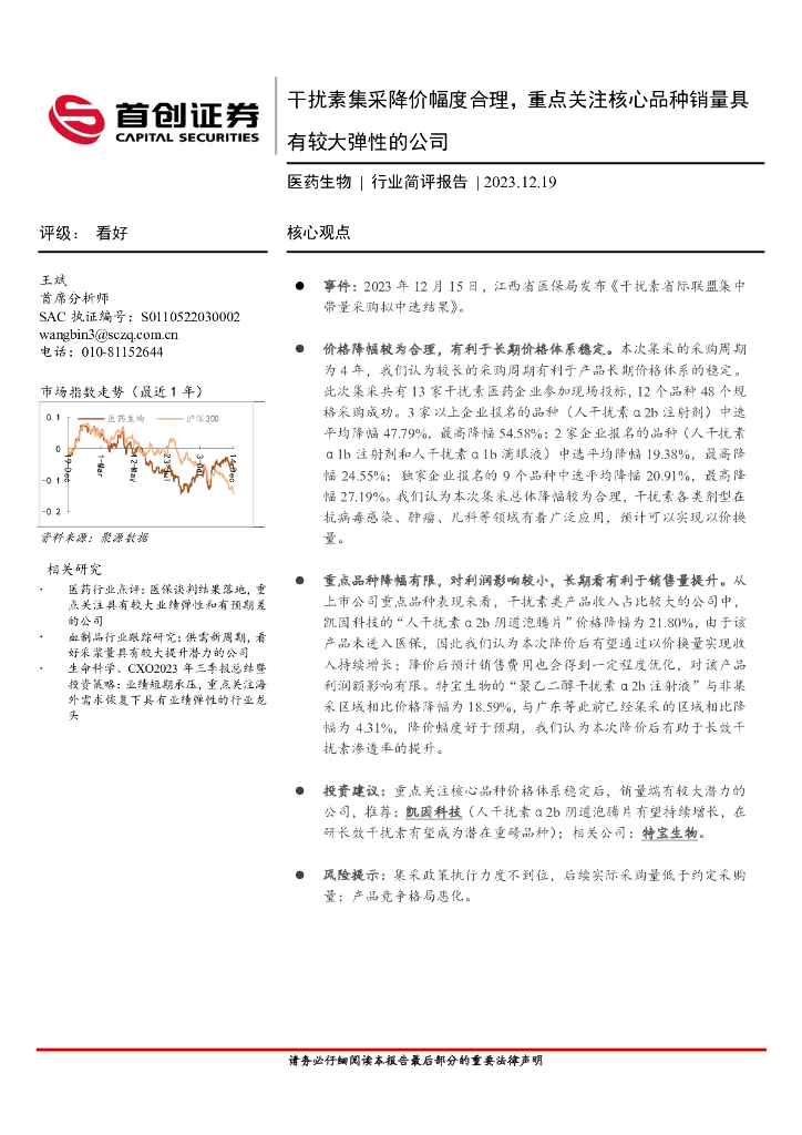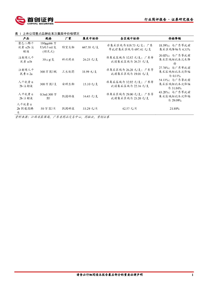 首创证券:医药生物行业简评点评:干扰素集采降价幅度合理,重点关注核心品种销量具有较大弹性的公司.pdf