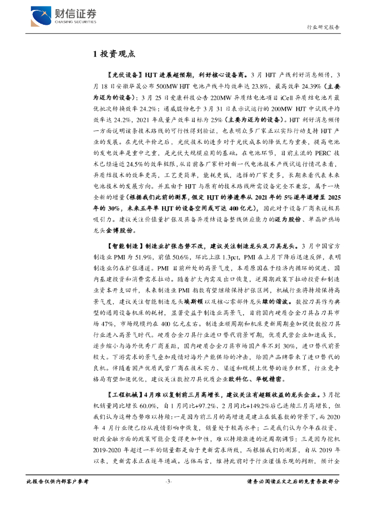 财信证券:机械设备行业月度报告:HJT量产项目超预期,光伏设备景气度向上.pdf