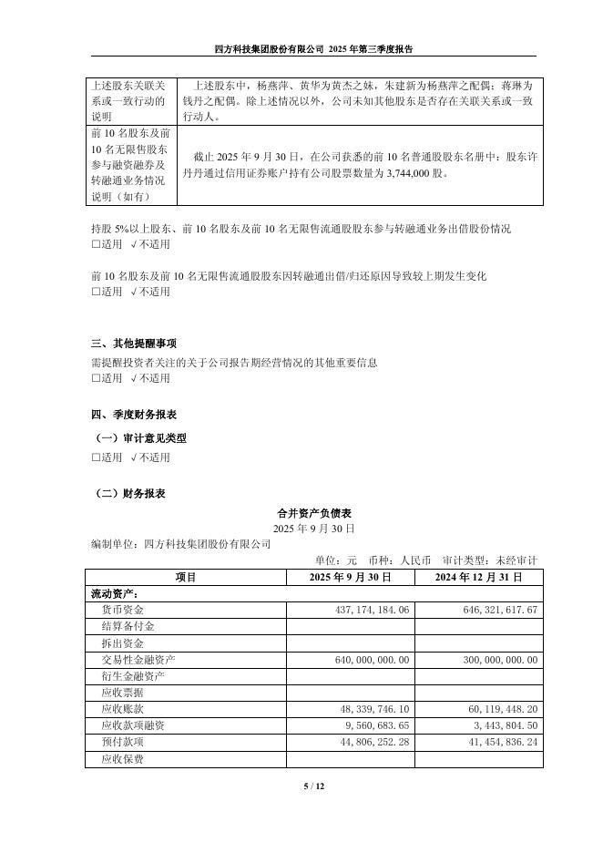 603339-四方科技:四方科技集团股份有限公司2025年第三季度报告.pdf