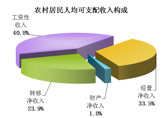 全年农村居民人均可支配收入8689元,比上年增加757元,名义增长9.5%,扣除价格因素实际增长8.3%。其中,工资性收入3548元,增长10.3%;经营净收入2909元,增长5.7%;财产净收入152元,增长26.7%;转移净收入2080元,增长12.8%。农村居民人均生活消费支出7901元,比上年增加649元,增长8.9%。农村居民年末人均住房建筑面积42.6平方米,比上年增长3.9%。