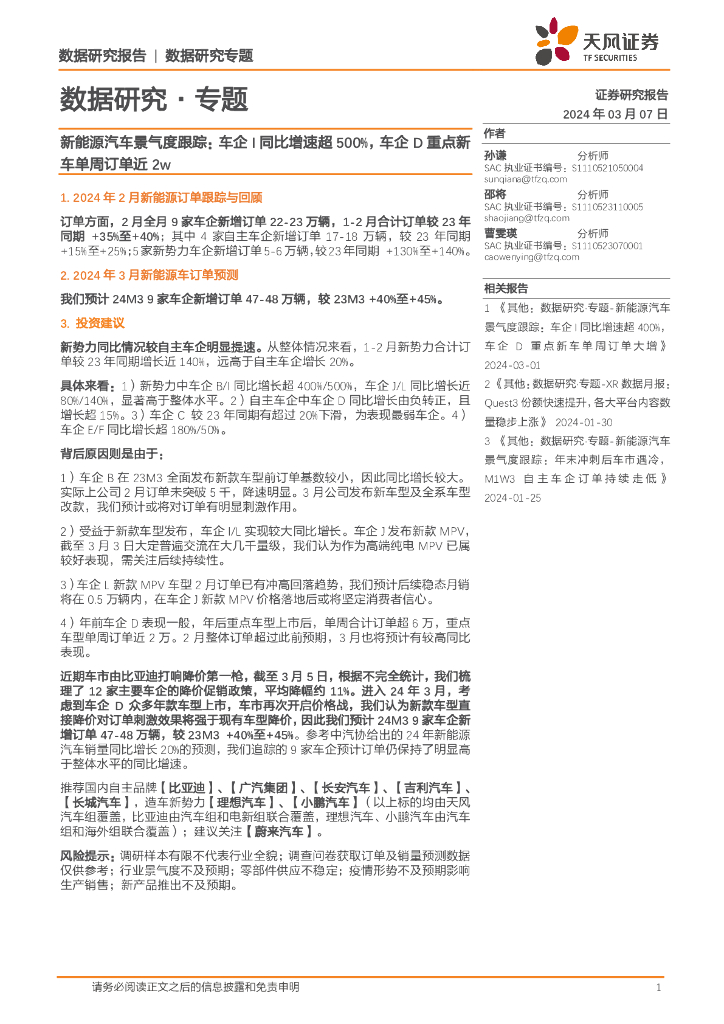 天风证券:新能源汽车景气度跟踪:车企I同比增速超500%,车企D重点新车单周订单近2w.pdf