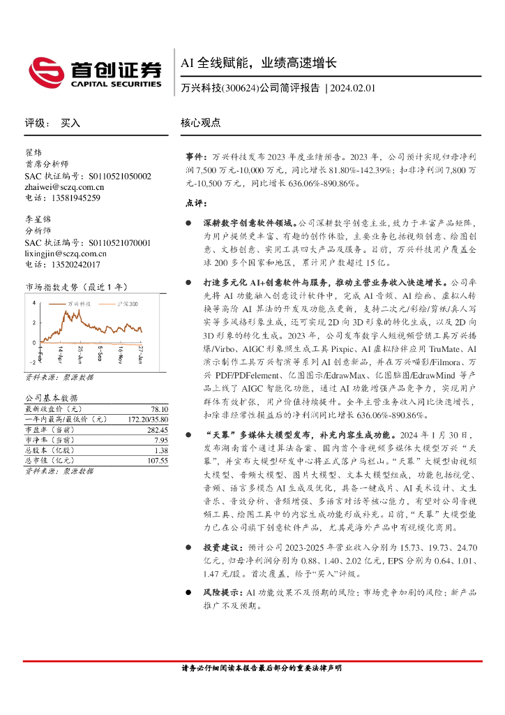 首创证券:万兴科技(300624)-公司简评报告:AI全线赋能,业绩高速增长.pdf