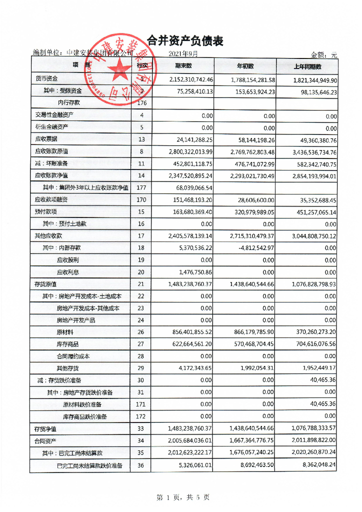 中建安装集团有限公司2021年三季度合并及母公司财务报表.pdf