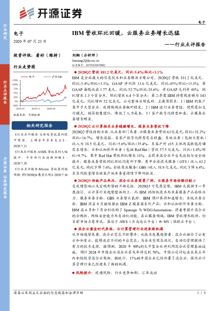 开源证券:电子行业点评报告:IBM营收环比回暖,云服务业务增长迅猛.pdf