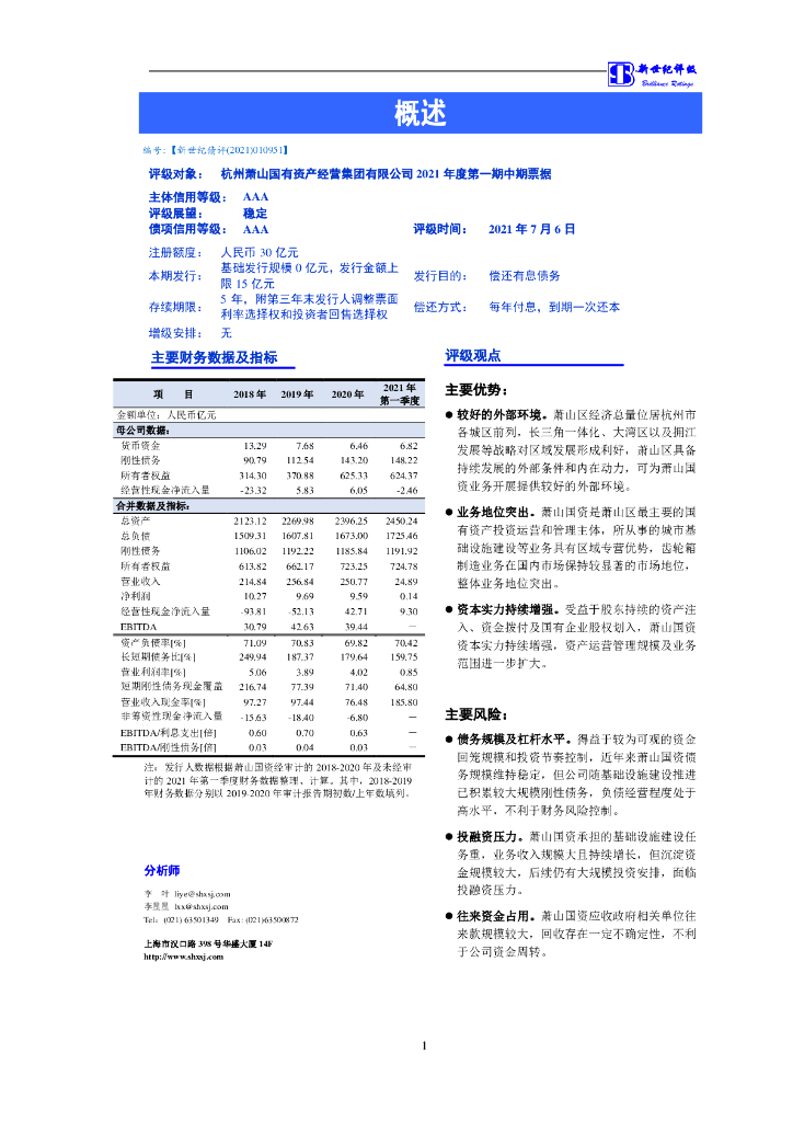 新世纪:杭州萧山国有资产经营集团有限公司信用评级报告.pdf