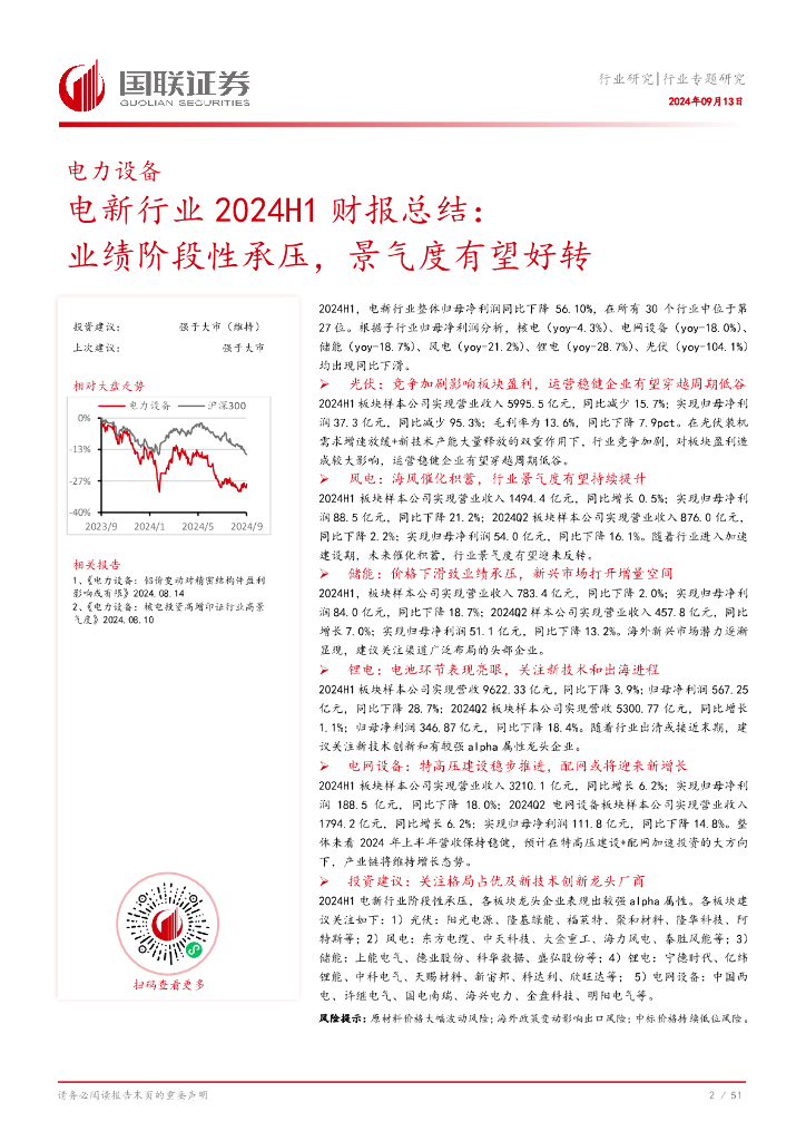 国联证券:电新行业2024H1财报总结:业绩阶段性承压,景气度有望好转.pdf