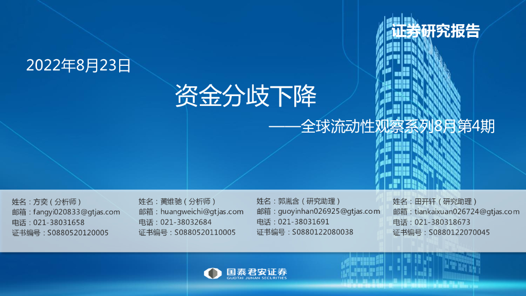 国泰君安:全球流动性观察系列8月第4期:资金分歧下降.pdf
