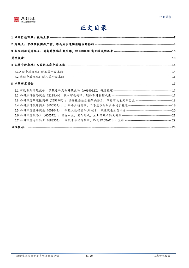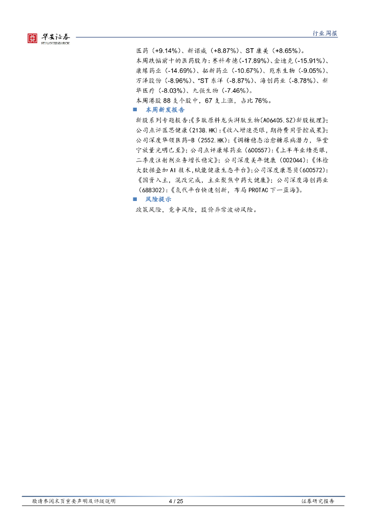 华安证券:医药生物行业周报:中报预报博弈严重,布局成长逻辑清晰医药标的.pdf