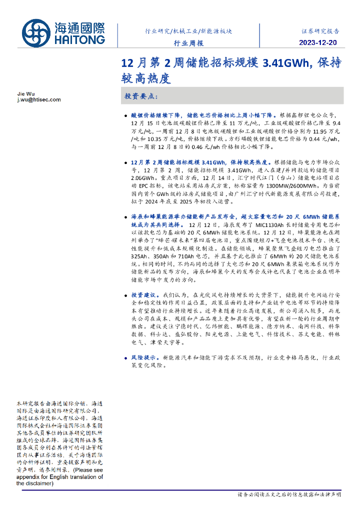 海通国际:新能源板块行业周报:12月第2周储能招标规模3.41GWh,保持较高热度.pdf