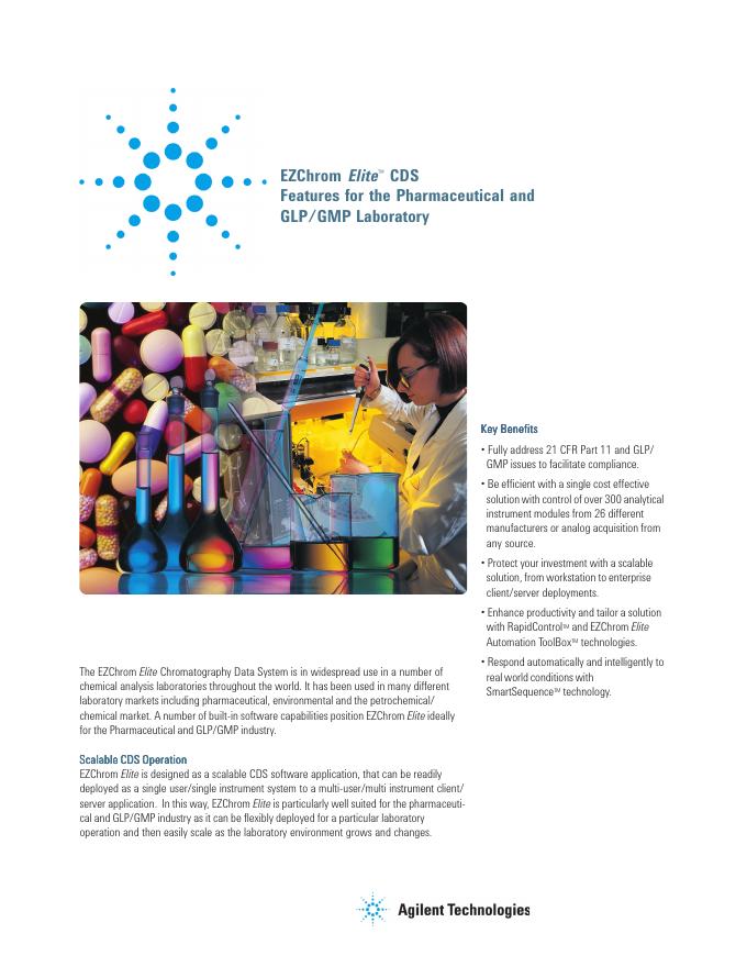 Agilent EZChrom Elite CDS Features for the Pharmaceutical and GLP/GMP Laboratory 数据手册.pdf