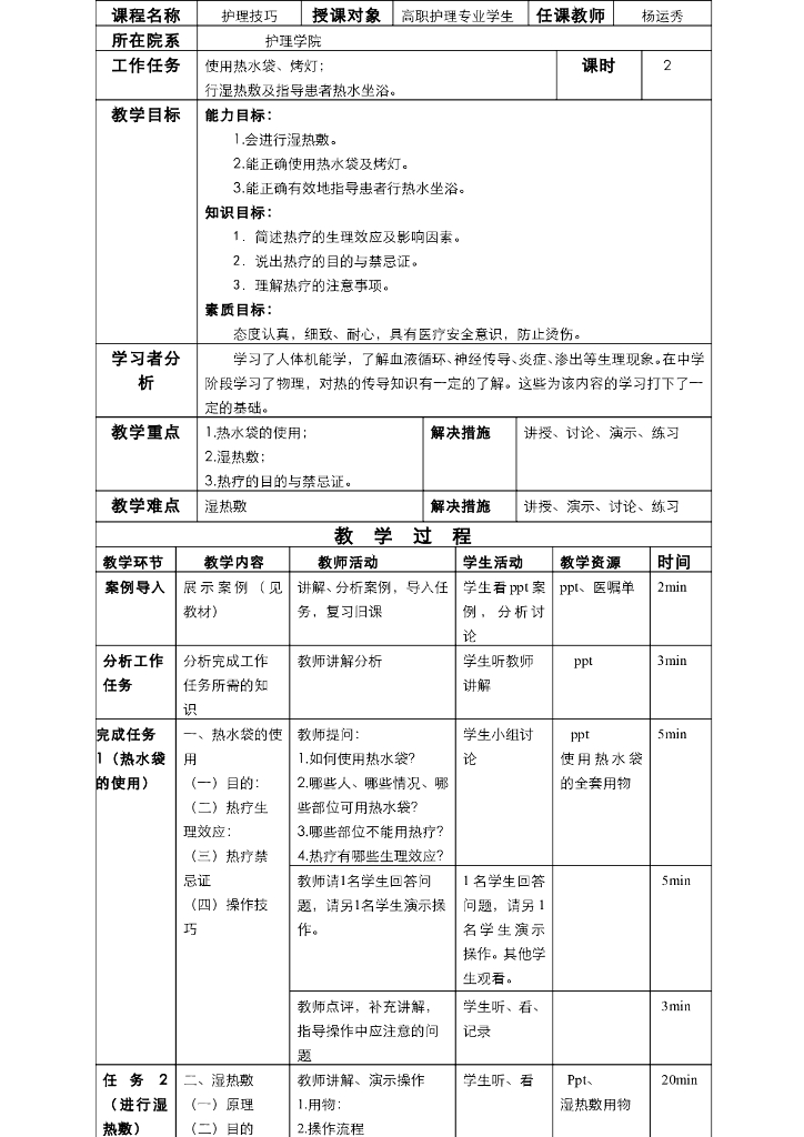 《护理技巧》电子教案-子任务一 应用热疗技术.pdf