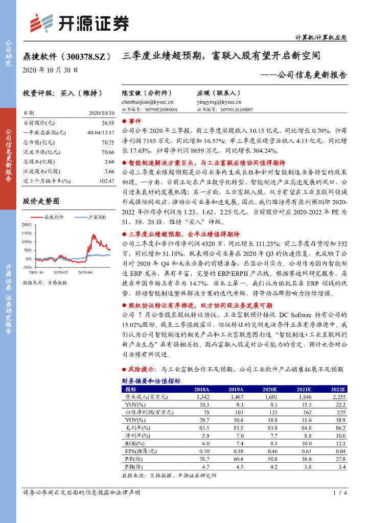 开源证券:鼎捷软件(300378)-公司信息更新报告:三季度业绩超预期,富联入股有望开启新空间.pdf