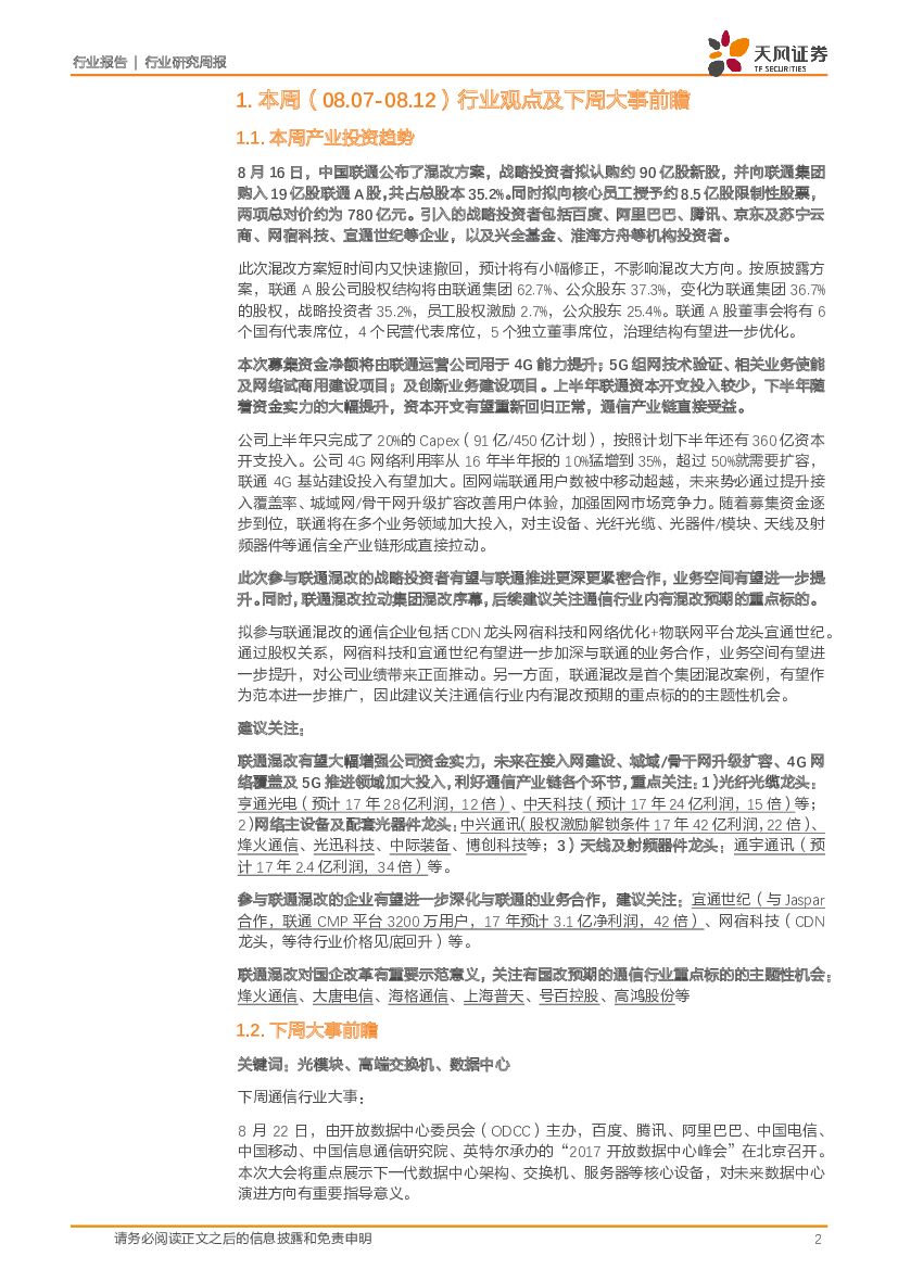 天风证券:通信:联通混改落地激活国改预期,基本面与概念板块并重.pdf
