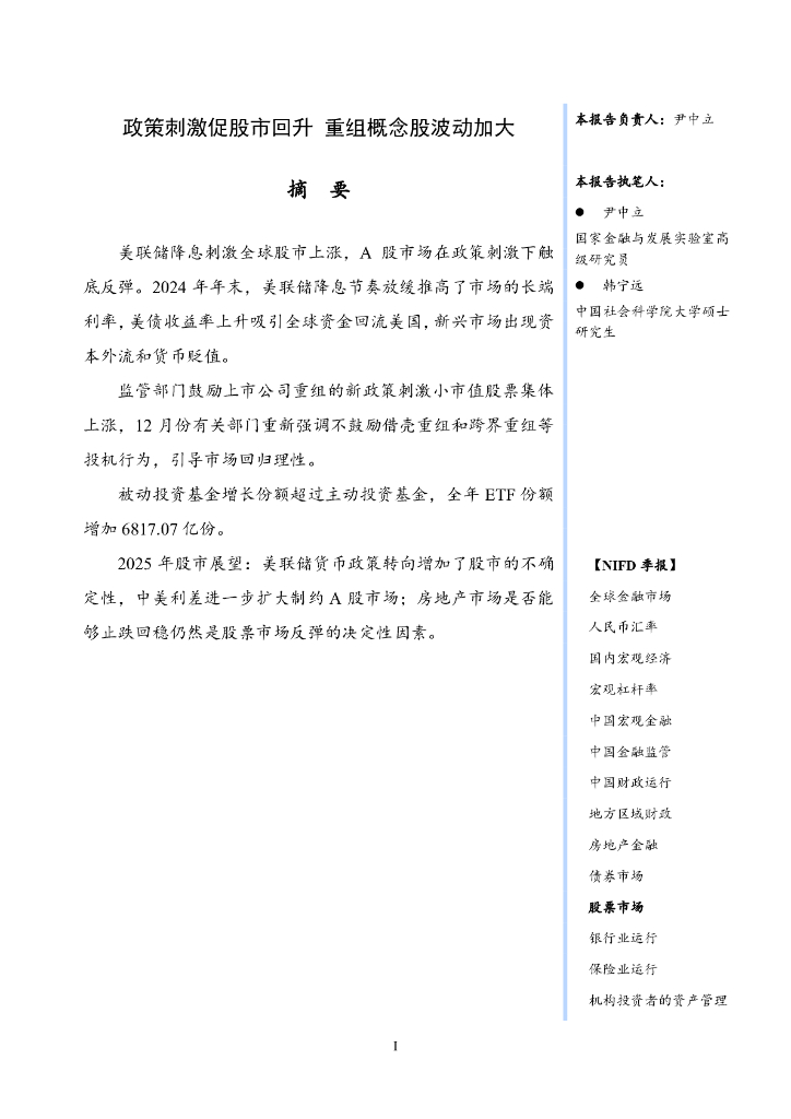 NIFD季报:政策刺激促股市回升 重组概念股波动加大——2024年度股票市场报告.pdf