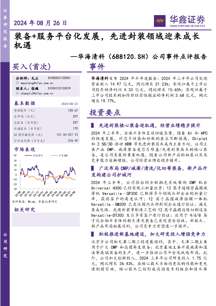 华鑫证券:华海清科(688120)-公司事件点评报告:装备+服务平台化发展,先进封装领域迎来成长机遇.pdf