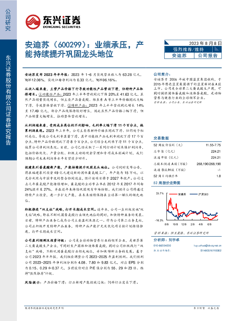 东兴证券:安迪苏(600299)-业绩承压,产能持续提升巩固龙头地位.pdf