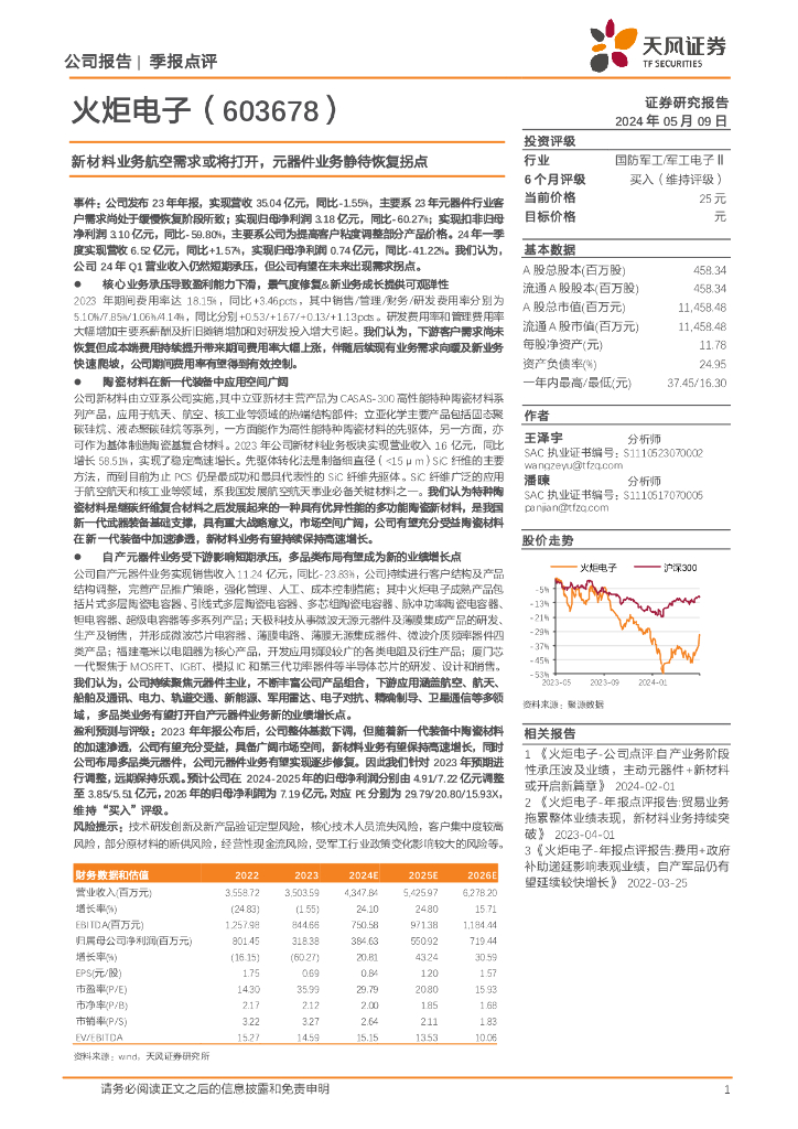 天风证券:火炬电子(603678)-新材料业务航空需求或将打开,元器件业务静待恢复拐点.pdf