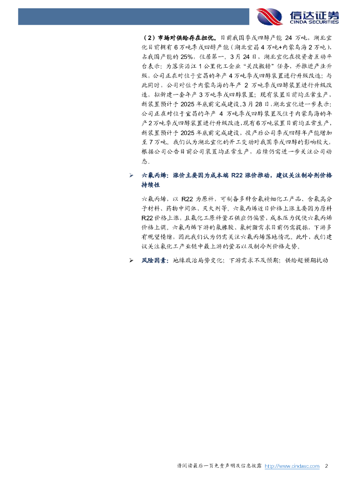 信达证券:化工行业:溴素、六氟丙烯、双季戊四醇价格明显上行,建议关注后续变化.pdf