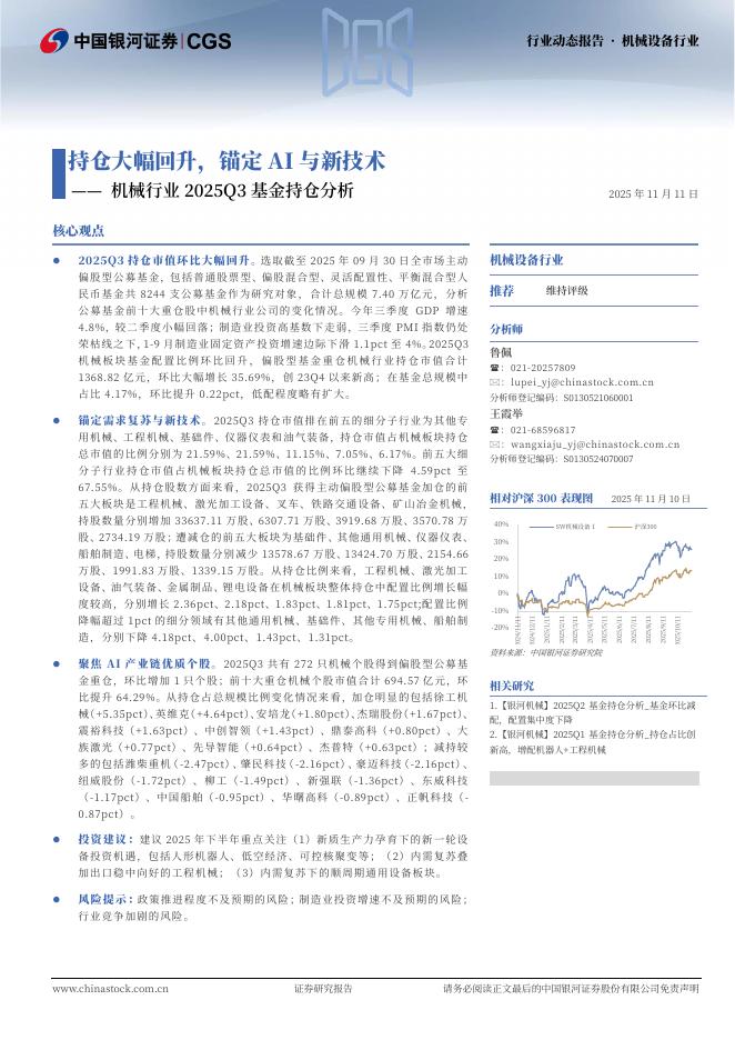 中国银河:机械行业2025Q3基金持仓分析:持仓大幅回升,锚定AI与新技术.pdf