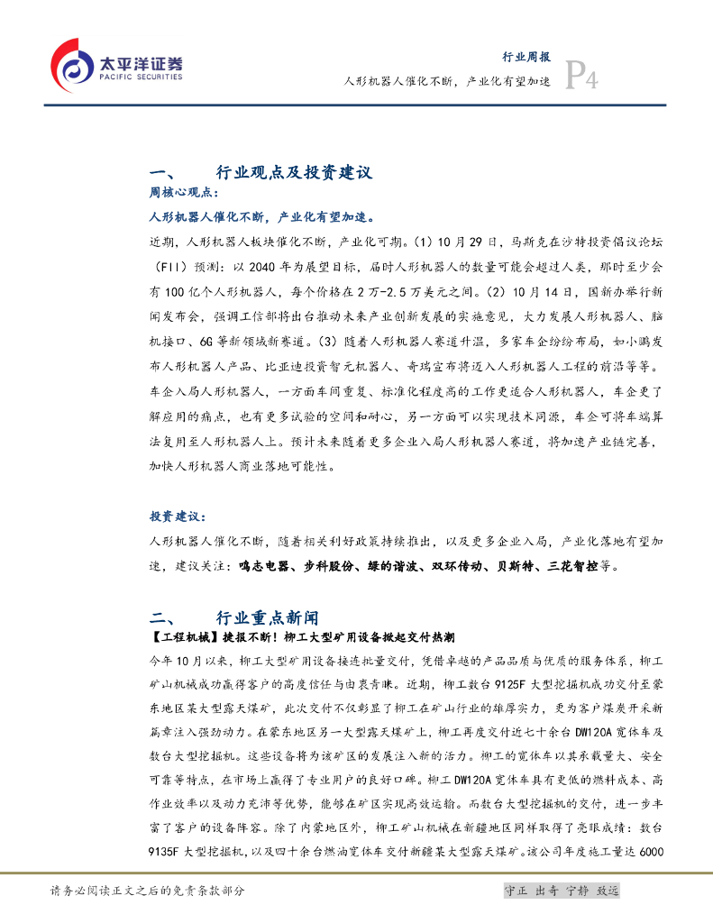 太平洋证券:机械行业周报:人形机器人催化不断,产业化有望加速.pdf