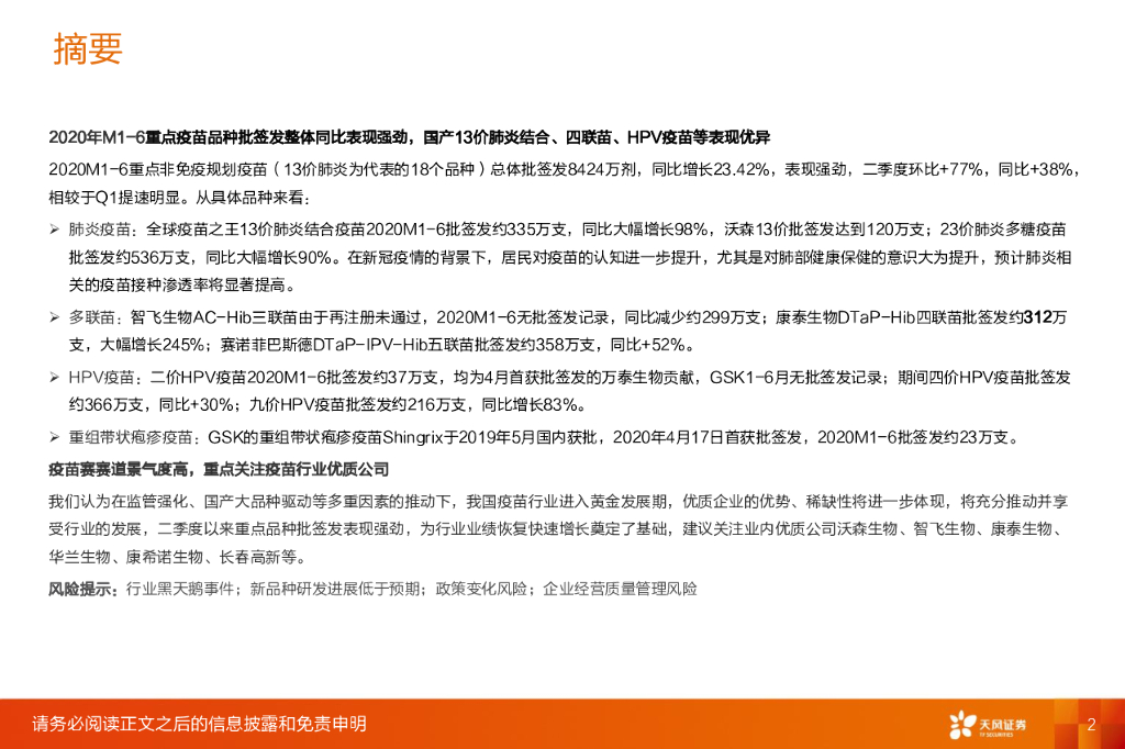 天风证券:2020年H1疫苗批签发报告:二季度批签发环比、同比显著提升,国产13价肺炎疫苗等表现强劲.pdf