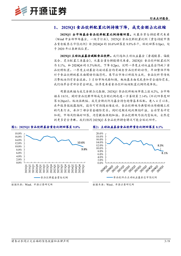 开源证券:食品饮料行业点评报告:2025Q1食品饮料仓位持续回落,白酒集中持仓.pdf