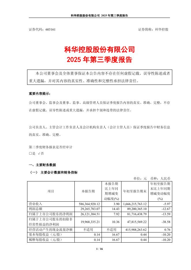 603161-科华控股:科华控股股份有限公司2025年第三季度报告.pdf