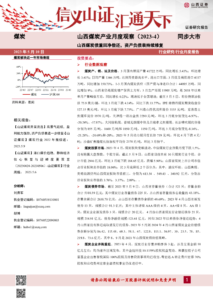 山西证券:山西煤炭产业月度观察(2023-4):山西煤炭债重回净偿还,资产负债表持续修复.pdf
