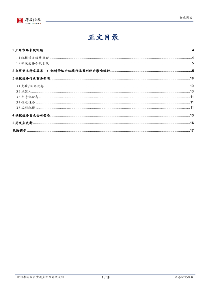 华安证券:机械设备行业周报:原材料成本下行提升行业利润率.pdf