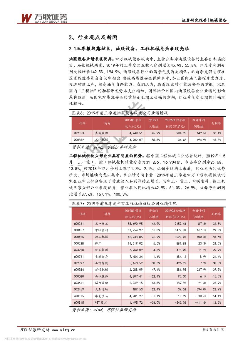 万联证券:机械设备行业周观点:三季报披露结束,油服设备、工程机械龙头表现优异.pdf