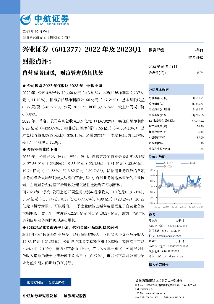 中航证券:兴业证券(601377)-2022年及2023Q1财报点评:自营显著回暖,财富管理仍具优势.pdf