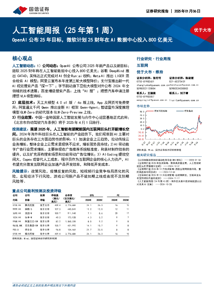 国信证券:互联网行业人工智能周报(25年第1周):OpenAI公布25年目标,微软计划25财年在AI数据中心投入800亿美元.pdf