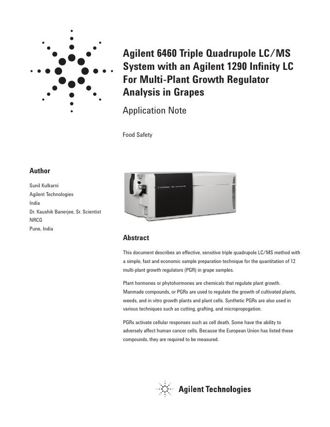 Agilent 6460 Triple Quadrupole LC/MS System with an Agilent 1290 Infinity LC For Multi-Plant Growth Regulator Analysis in Grapes 数据手册.pdf