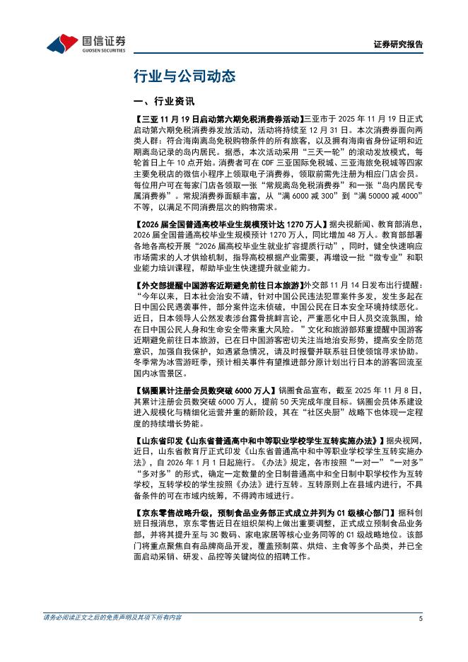 国信证券:社会服务行业双周报(第119期):三亚发放新一轮免税消费券,2026届预计新增48万普通高校毕业生.pdf
