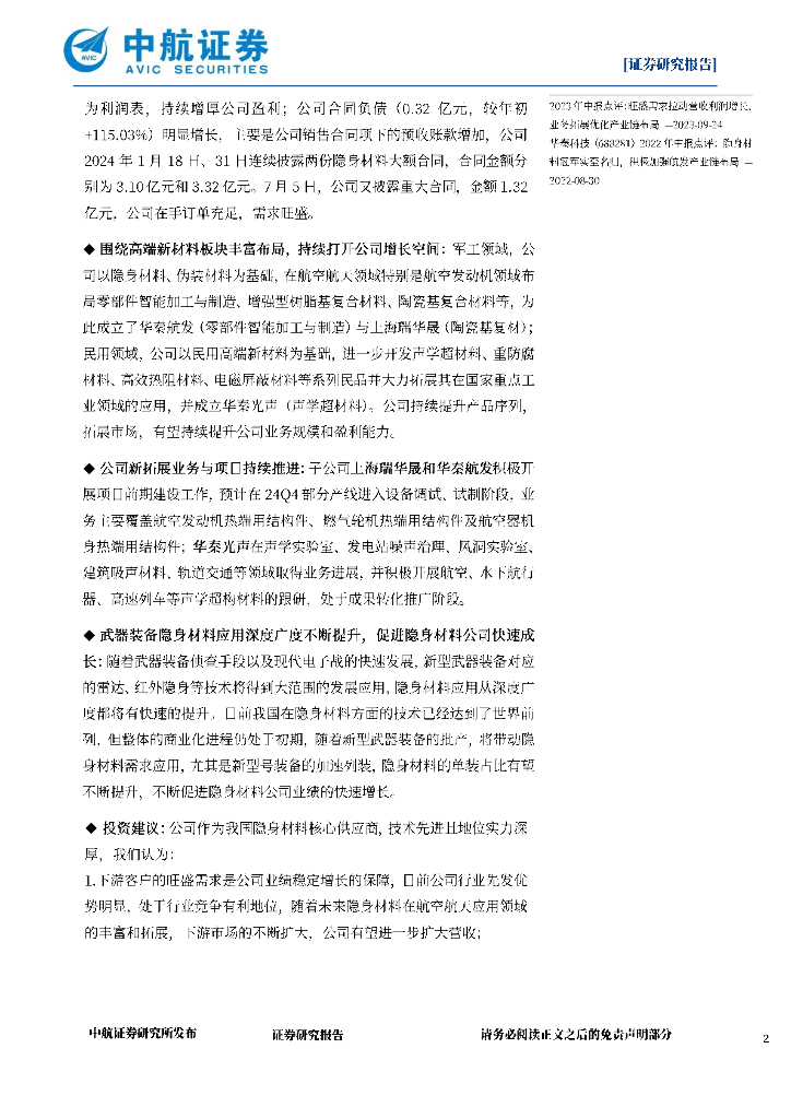 中航证券:华秦科技(688281)-2024年三季报点评:在手订单充足,业绩继续创同期新高.pdf