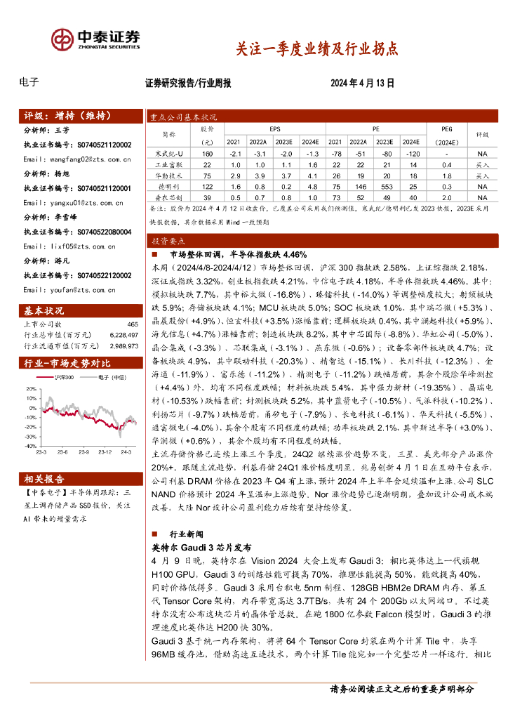 中泰证券:电子行业周报:关注一季度业绩及行业拐点.pdf