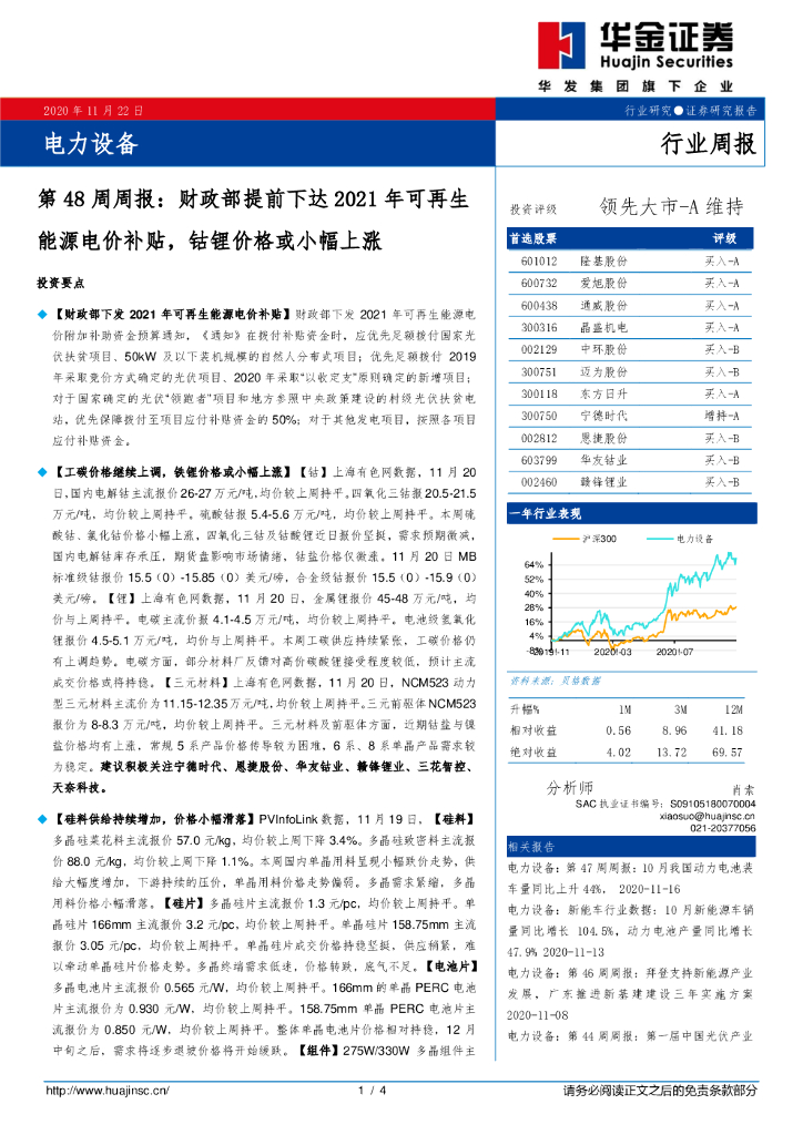 华金证券:电力设备第48周周报:财政部提前下达2021年可再生能源电价补贴,钴锂价格或小幅上涨.pdf