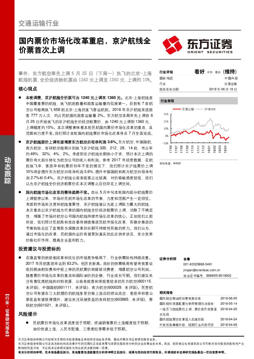 东方证券:交通运输行业动态跟踪:国内票价市场化改革重启,京沪航线全价票首次上调.pdf