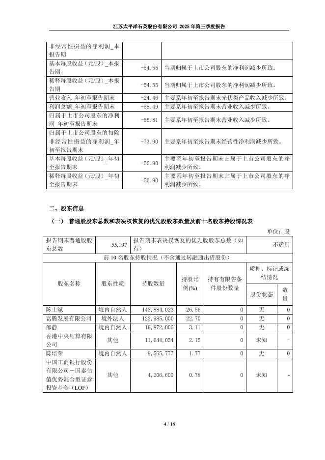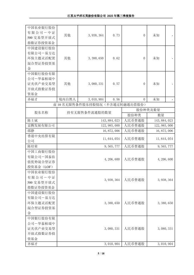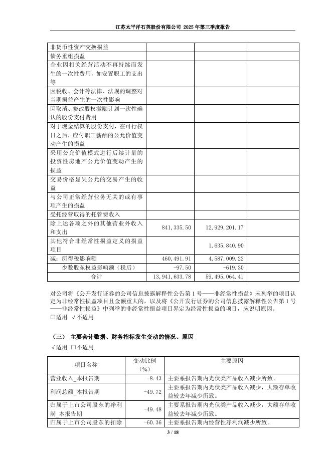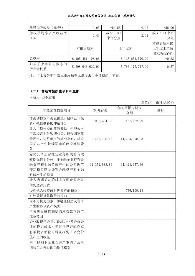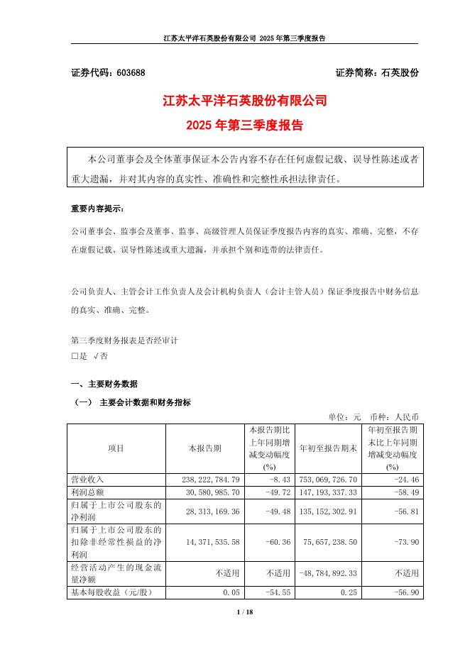 603688-石英股份:江苏太平洋石英股份有限公司2025年第三季度报告.pdf