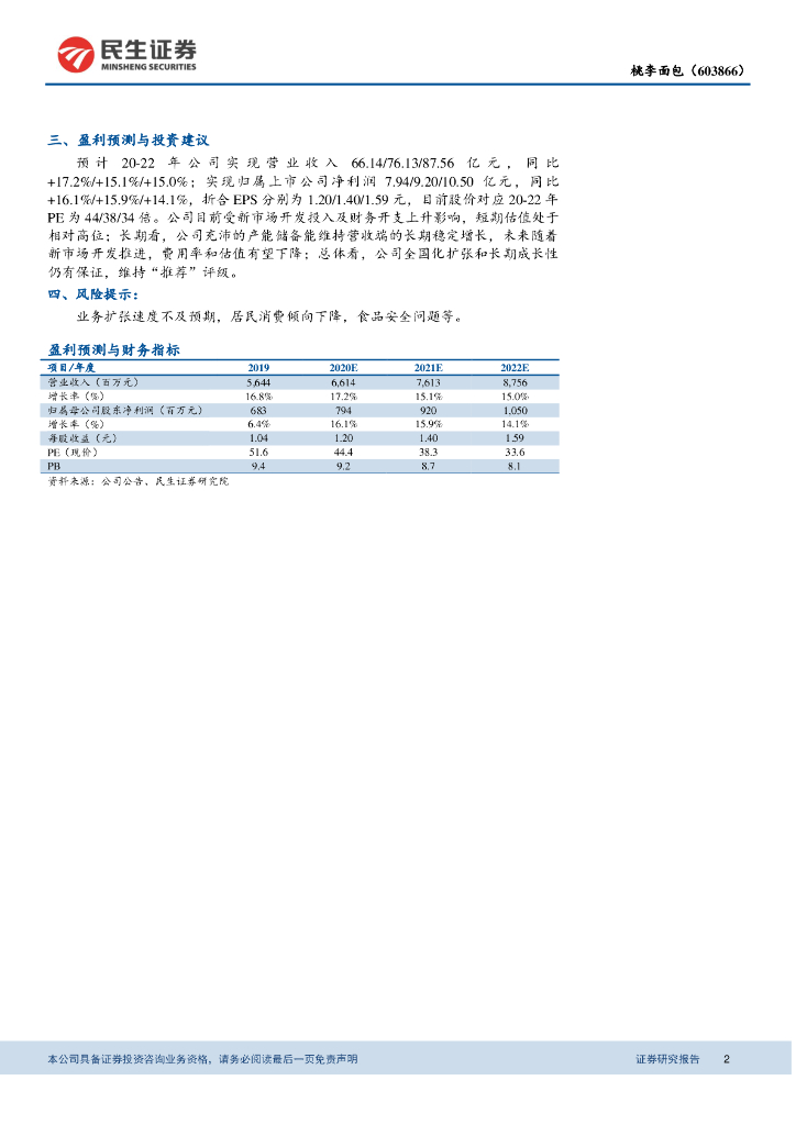民生证券:桃李面包(603866)-2019年报公告点评:市场开发稳步推进,长期产能储备充足.pdf