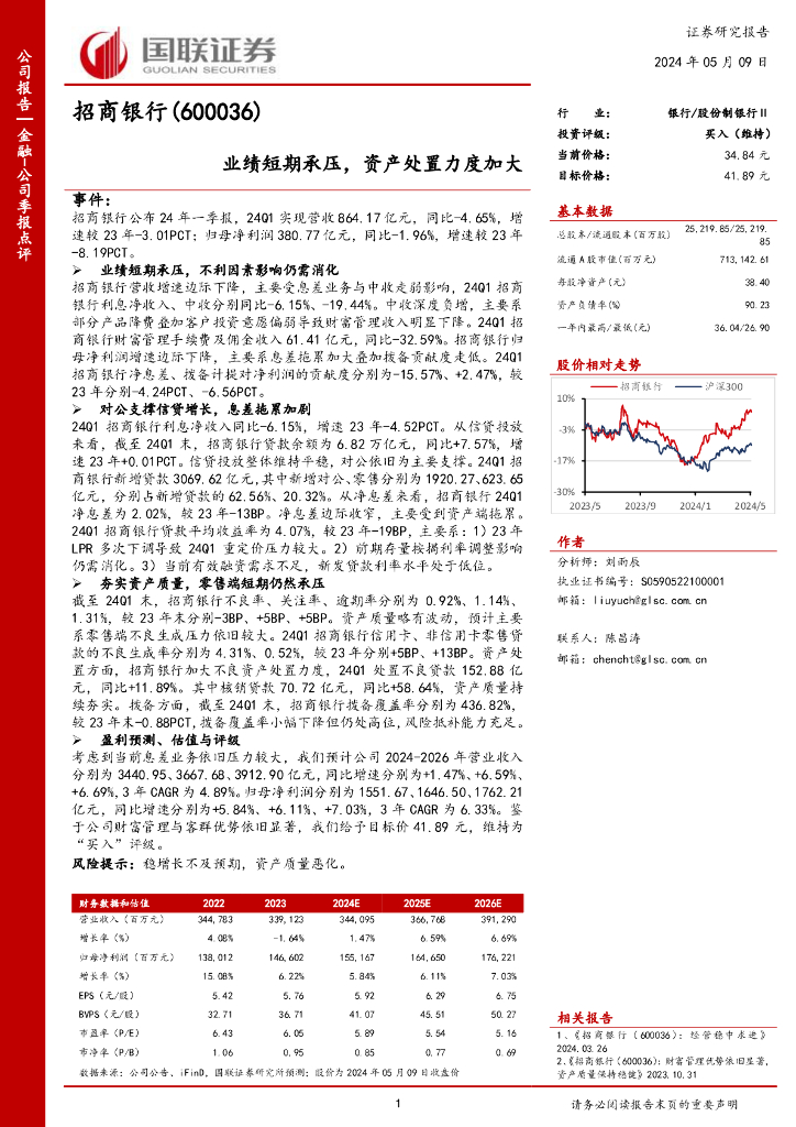 国联证券:招商银行(600036)-业绩短期承压,资产处置力度加大.pdf