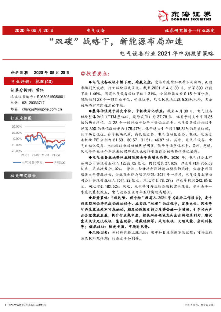 东海证券:“双碳”战略下,新能源布局加速—电气设备行业2021年中期投资策略.pdf