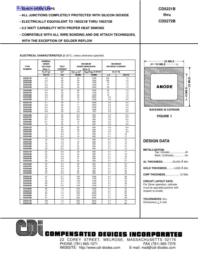 COMPENSATED DEUICES INCORPORATED CD5221B thru CD5272B 数据手册.pdf