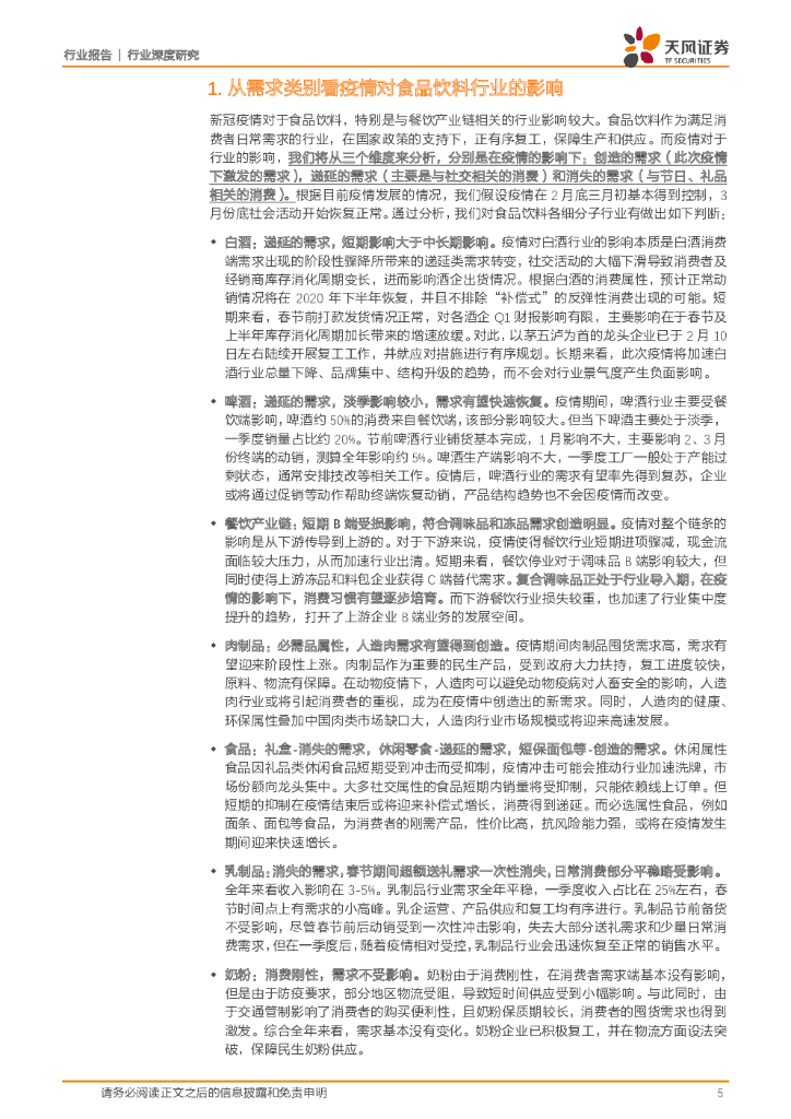 天风证券:食品饮料:从需求类别看疫情对食品饮料行业的影响-消失的需求,创造的消费,递延的社交.pdf