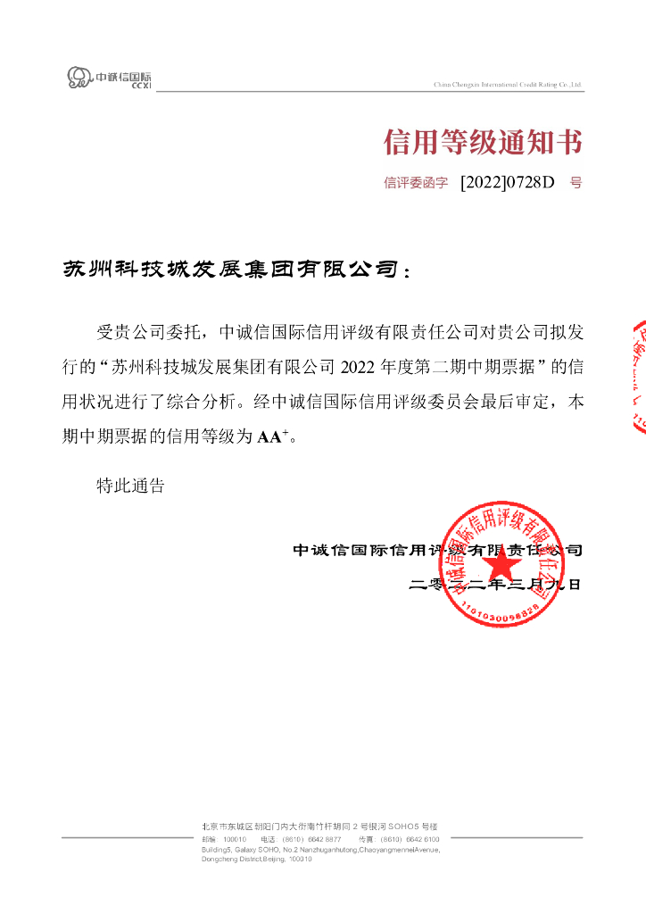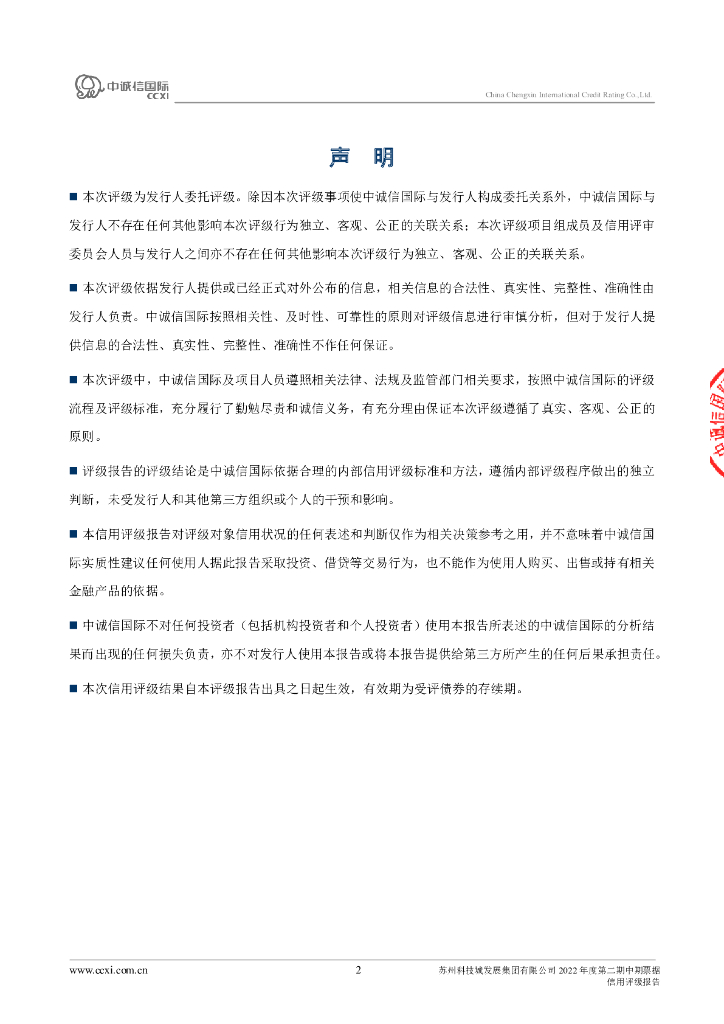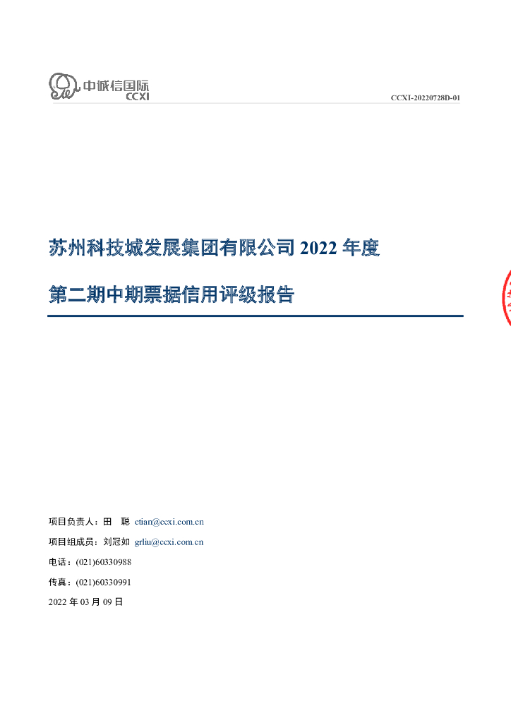 中诚信:苏州科技城发展集团有限公司2022年度第二期中期票据信用评级报告.pdf