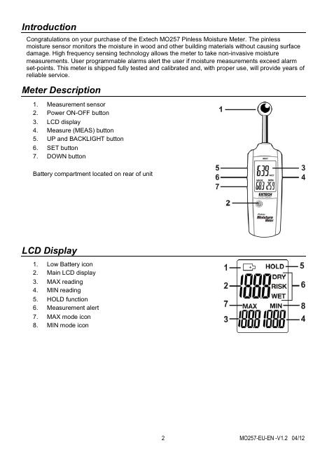 EXTECH INSTRUMENTS MO257 Pinless Moisture Meter 用户指南.pdf