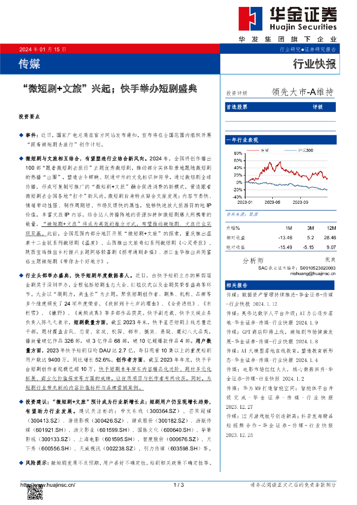 华金证券:传媒行业快报:“微短剧+文旅”兴起;快手举办短剧盛典.pdf