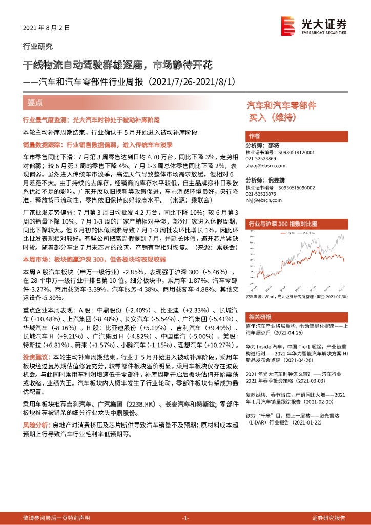 光大证券:汽车和汽车零部件行业周报:干线物流自动驾驶群雄逐鹿,市场静待开花.pdf
