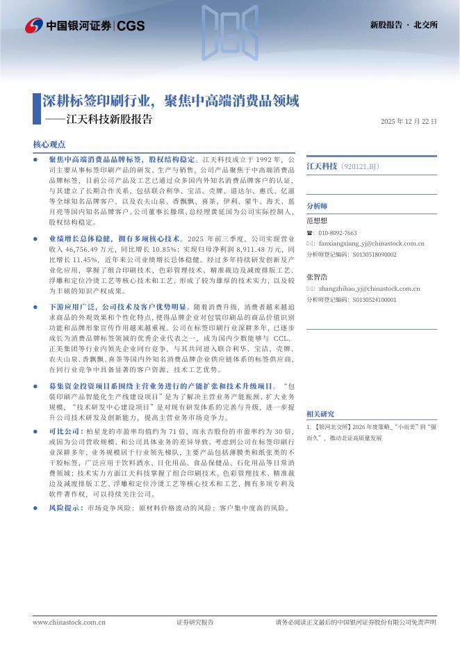 中国银河:江天科技新股报告:深耕标签印刷行业,聚焦中高端消费品领域.pdf