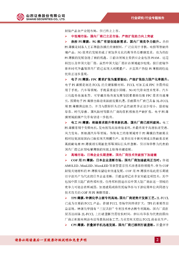 山西证券:PI薄膜专题报告:“产能扩张+技术突破”助力PI薄膜国产化进程加快.pdf